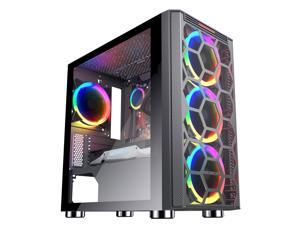 ESGAMING Over-size Micro ATX Gaming Case with Sliding Tempered Glass Side Panel, Pre-Installed 4 X 120mm Rainbow Fans.